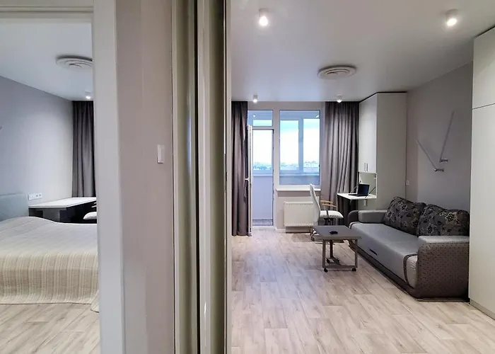 В апартаментах Двокімнатна smart квартира є балкон, кухня і вітальня, а також такі зручності, як система клімат-контролю. Можна насолодитись комфортом ванної кімнати в апартаментах, яка оснащена феном і рушниками. Крім того, ви знайдете окремий туалет і душ.